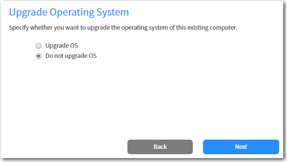 - If you only want to migrate applications or add additional applications to the existing computer but do not do not want to upgrade its OS, select Do not upgrade OS .