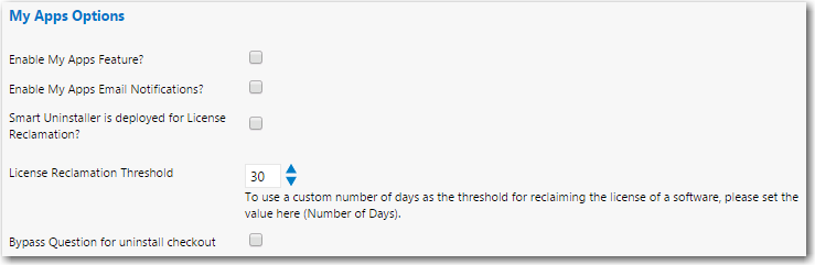 - Open the Site Management > Settings > Flexera Integration view and locate the My Apps Options area.