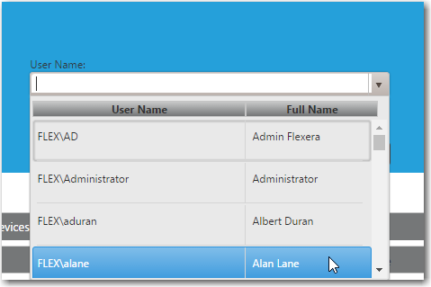 • Switching to a different user of the same device—If no user is assigned to the computer or if you want to select a different assigned user, click the user icon in the Action column. A user name selection dialog box opens.